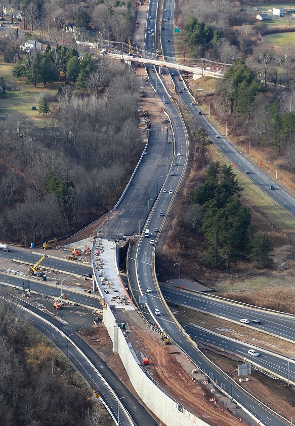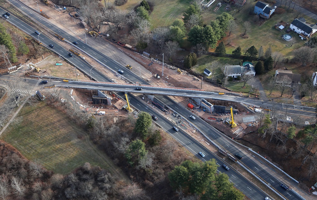 Facing north, Route 15 NB widening over I-91 south of East Main Street